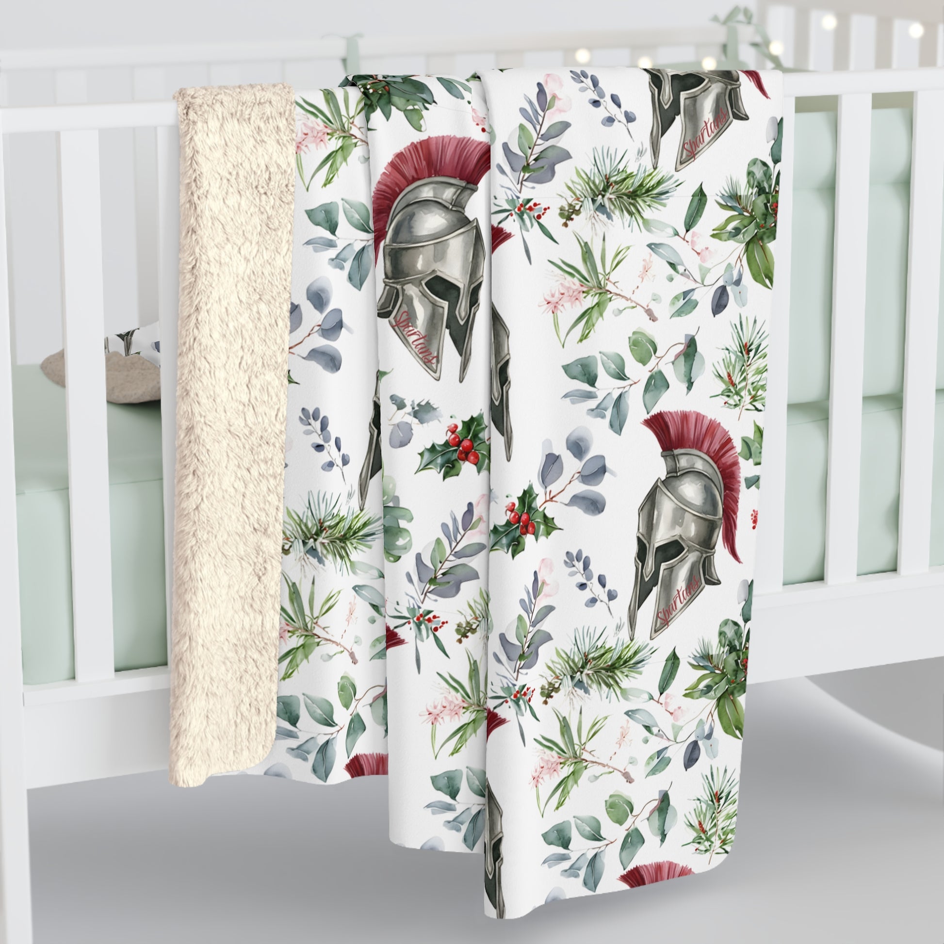 Spartan Christmas Floral Sherpa Fleece Blanket