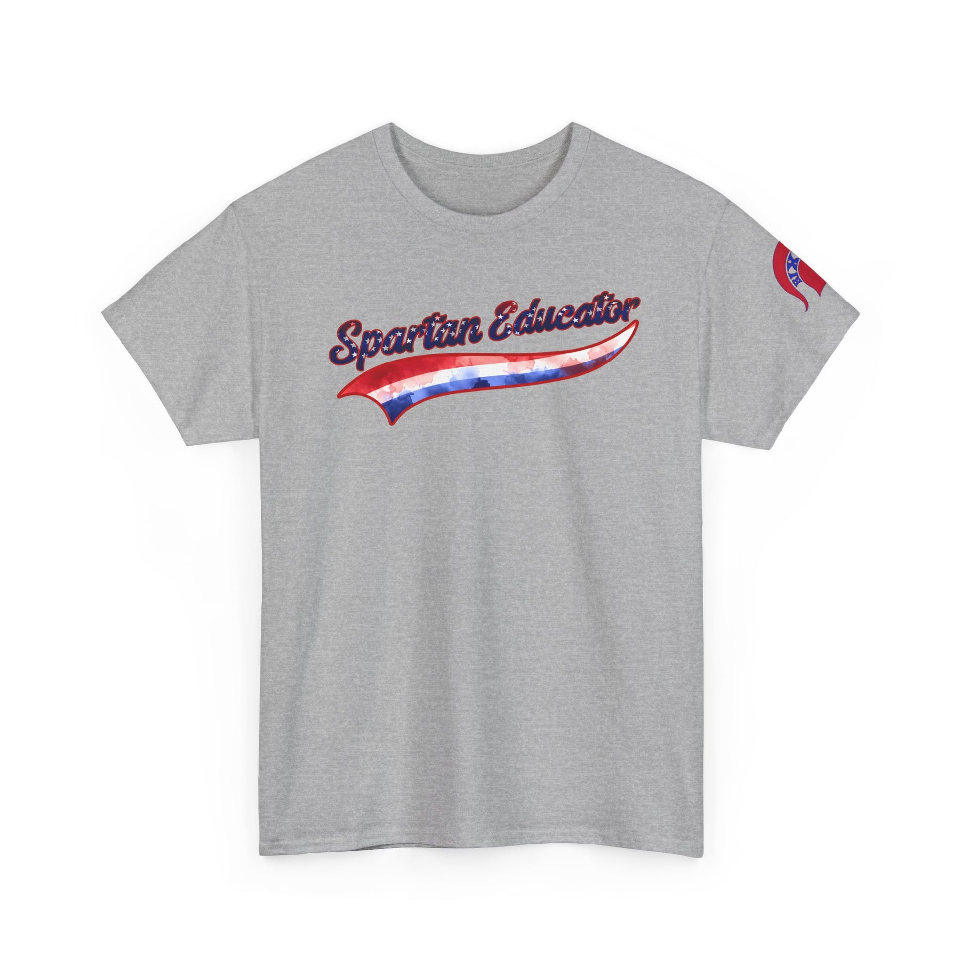 Spartan Educator Patriotic Design Gildan Tee With Sleeve Logo
